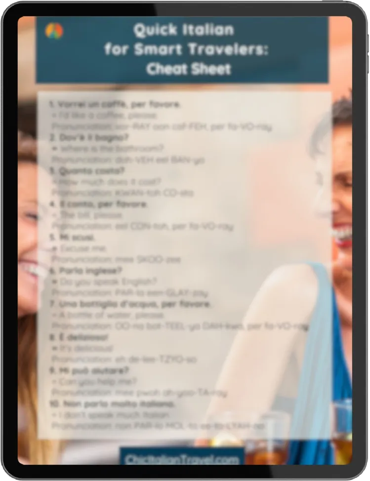 This will give you the basics to greet, thank, order, apologise, and ask for help, all with simple, respectful Italian. And yes, it’ll save you from being that (high-cringe-factor) tourist.